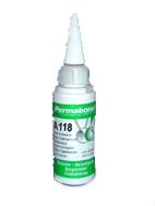 Permabond A118 является анаэробным клеем, разработанным для обеспечения долговременной фиксации и герметизации металлических деталей, таких как подшипники, шестерни, распорки и другие резьбовые детали. Проявляет высокую прочность, отличную износостойкость и устойчивость к вибрации, усталостной коррозии и коррозионному истиранию. Эти свойства позволяют снизить допуск на обработку и отказаться от механических блокирующих устройств, следствием чего является экономия затрат.