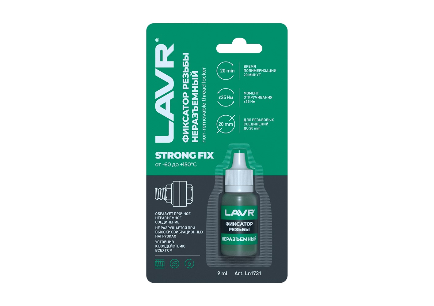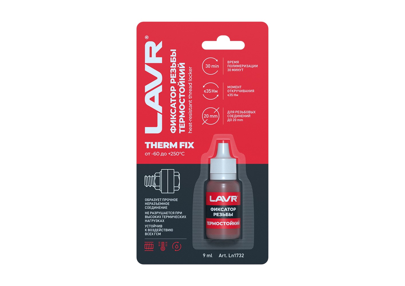 Фиксатор резьбы LAVR «Термостойкий» неразъёмный 9мл ПРОМО