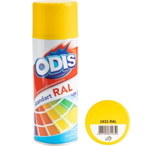 ODIS Standart RAL – незаменимый помощник в доме, гараже, на даче, применяется на производстве, в оформительских и дизайнерских работах. Цвет эмали соответствует европейскому стандарту RAL. Вес готового пигмента (масса нетто) 290г , что позволяет одним баллоном окрасить до 2,5 кв.м. в зависимости от цвета, количества слоев и типа обрабатываемой поверхности. Полностью высыхает за несколько минут.
