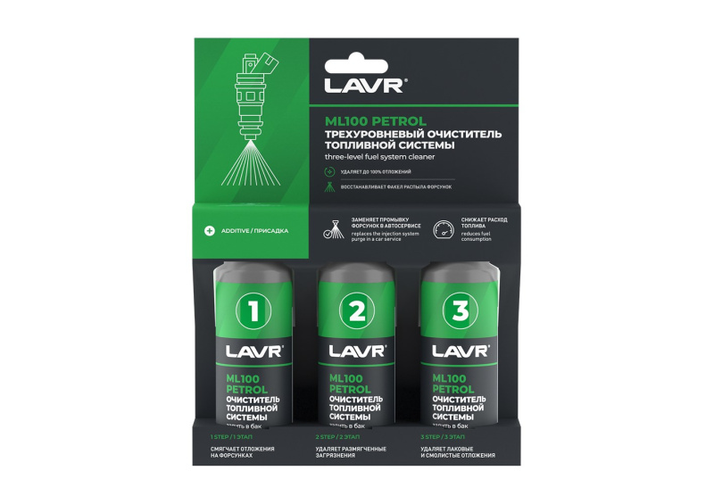 Трехуровневая очистка топливной системы LAVR PETROL ML100 3*120мл