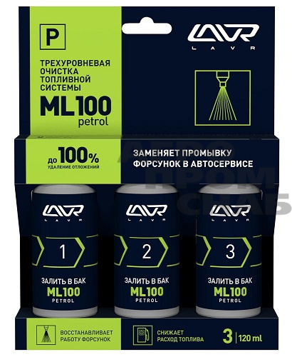Трехуровневый очиститель топливной системы ML100 PETROL разработан на основе легендарного препарата для промывки систем впрыска ML101 EURO. Запатентованные компоненты LAVR ISP/DET™ делают добавку в топливо ML100 такой же эффективной, как процедура промывки инжекторов в автосервисе. Этим препаратом вы можете самостоятельно очистить систему впрыска качественно и безопасно. Препарат применяется при температуре окружающей среды выше -5°C.инжекторов в автосервисе.Удаляет до 100% загрязнений и полностью обновляет форсунки. Снижает расход топлива. Подходит для всех типов систем впрыска бензиновых двигателей.