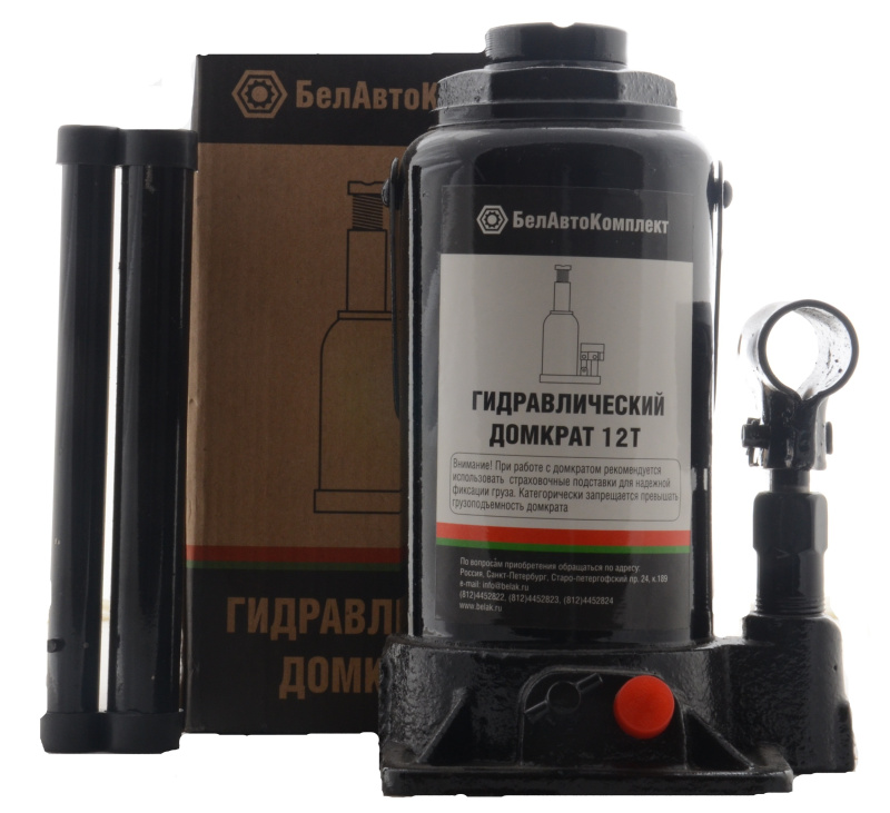 При выборе бутылочного домкрата (12 тонн) необходимо понимать основные условия его использования, например, характеристики груза, его габариты, тип и вес (до 12 тонн), а также репутацию производителя. Эти параметры могут влиять и на цену домкрата: при равной грузоподъемности 12 тонн отечественное устройство обычно существенно дешевле импортного. При этом бутылочный домкрат 12 т, изготовленный компанией «БелАвтоКомплект», совершенно не уступает зарубежным аналогам по важнейшим показателям, таким как: