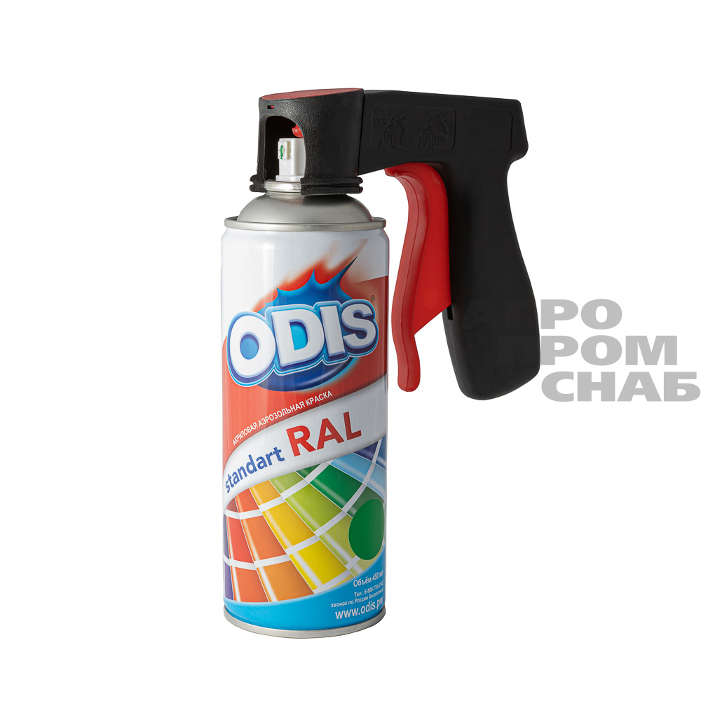 Пистолетный держатель для аэрозольных баллонов ODIS Ds1110 - приспособление многократного использования, предназначенное для установки на баллончик с краской, клеем, лаком, очистителем и других видов аэрозольной продукции, с целью обеспечения удобства работы и комфортного распыления (нанесения краски, лаков и т. п. материалов).