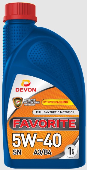 Масло Devon МОТОРНОЕ FAVORITE 5w-40 SN,A3/B4 (синт.) 1л.