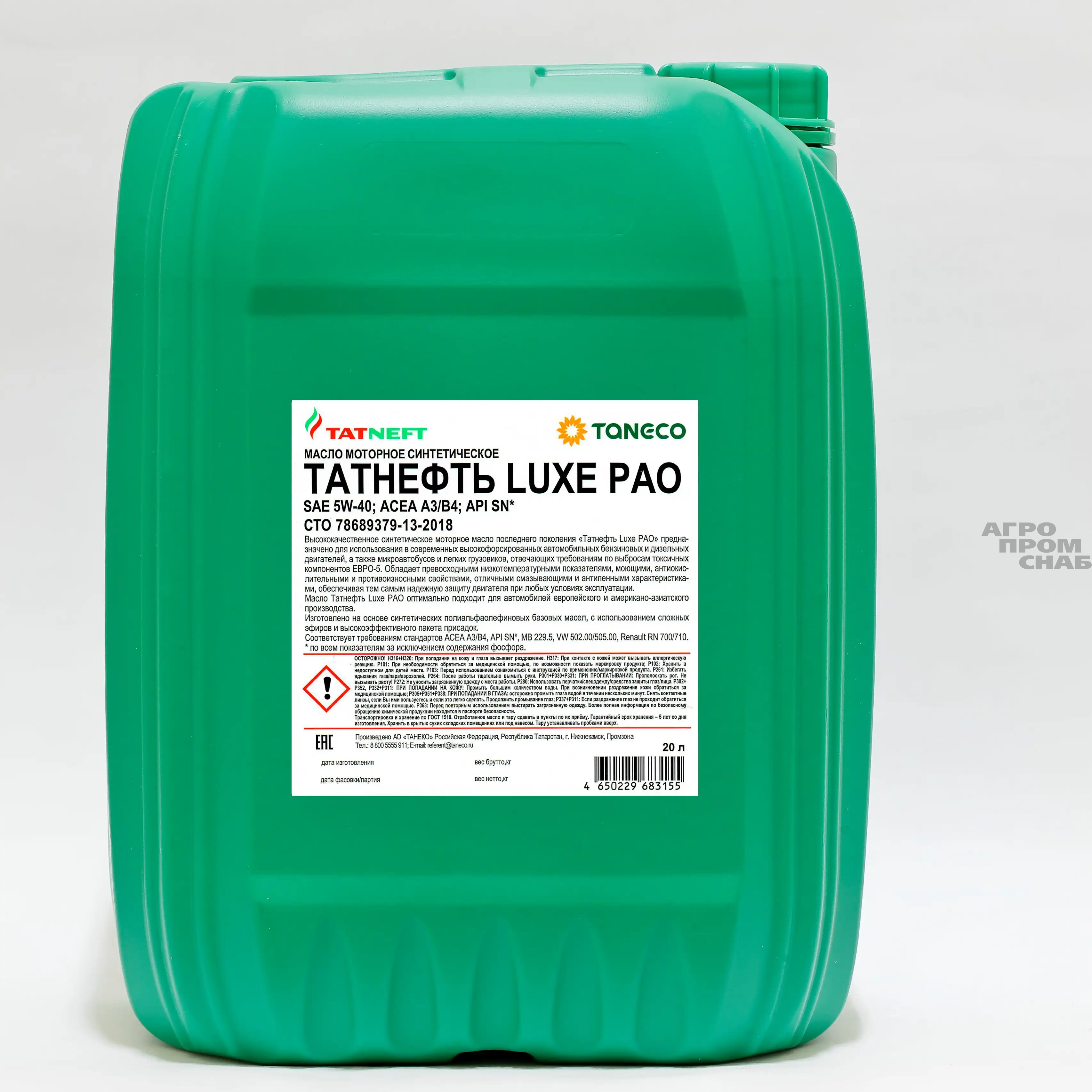 Масло Татнефть МОТОРНОЕ LUXE PAO 5W-40 SN,A3/B4 (синт.) 20л.