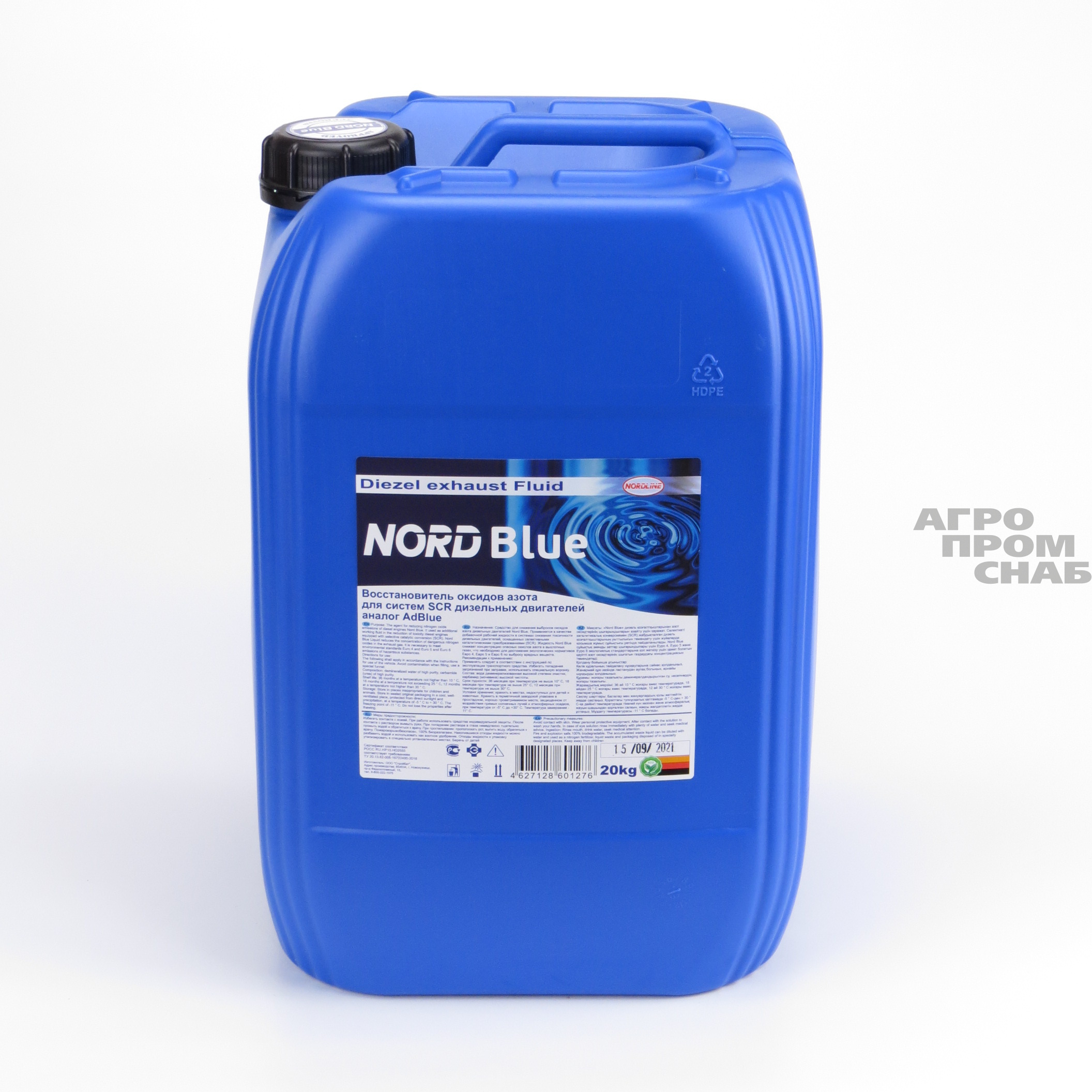 Средство для снижения выбросов оксидов азота дизельных двигателей Nord Blue. Применяется в качестве добавочной рабочей жидкости в системах снижения токсичности дизельных двигателей, оснащенных селективными каталитическими преобразованиями (SCR). Жидкость Nord Blue снижает концентрацию опасных окислов азота в выхлопных газах, что необходимо для достижения экологических нормативов Евро 4, Евро 5 и Евро 6 по выбросу вредных веществ.