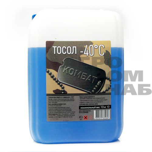 Тосол Комбат - универсальная всесезонная охлаждающая жидкость, изготавливаемая по традиционной (IAT - Inorganic Acid Technology) технологии. Предназначен для систем охлаждения двигателей автомобилей отечественного производства. Обеспечивает защиту от коррозии черных и цветных металлов. Не вызывает образование осадков, отложений, гелей. Нейтрален к резиновым уплотнениям, шлангам, патрубкам. Интервал температуры окружающей среды: от -40°С до +50°С.